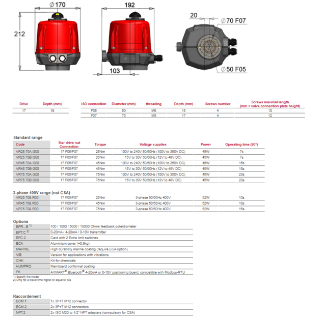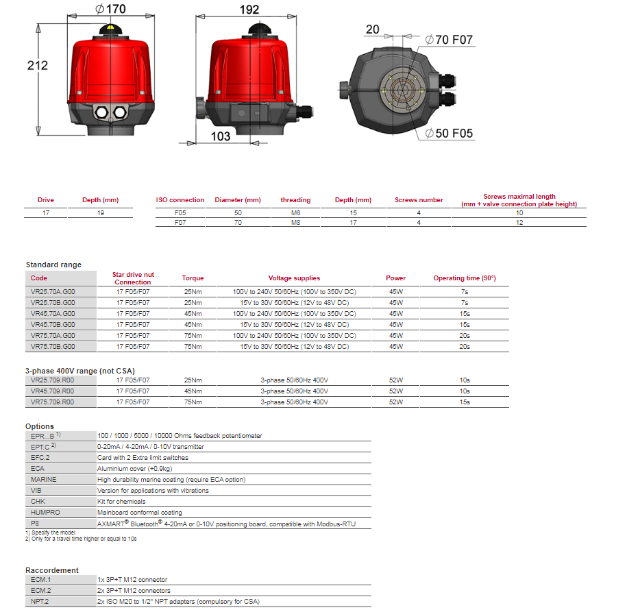 - Available with: BBPR – emergency backup, POSI – proportional control, 3 POSITIONS, POSI-BBPR, 3 POSITIONS-BBPR, BLUETOOTH, Modbus-RTU