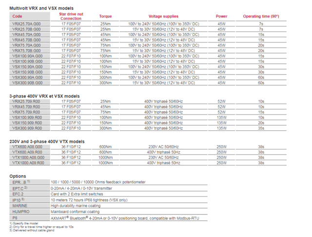 - Torque limiter monitored by software (except 400V) or mechanical (VTX)
