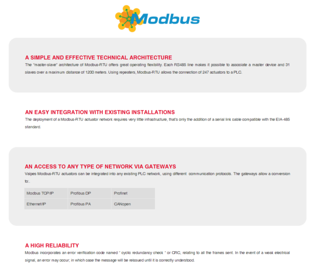 VALPES ELECTRIC ACTUATOR – Modbus-RTU
