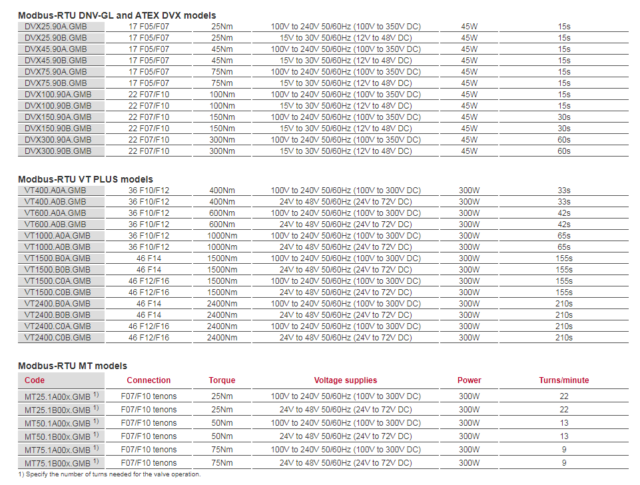 Actuators from 10 to 2400 Nm with Modbus-RTU fieldbus protocol compatibility.