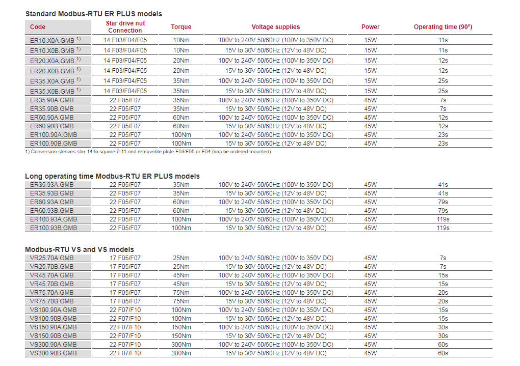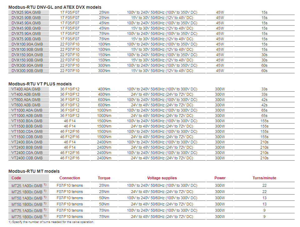 Actuators from 10 to 2400 Nm with Modbus-RTU fieldbus protocol compatibility.
