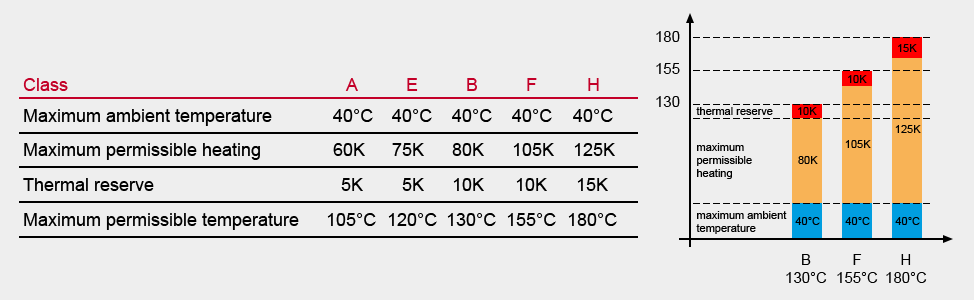 The temperature reached by the insulators limits the lifetime of an electric apparatus. The insulation class is defined by the insulator with the lowest temperature.